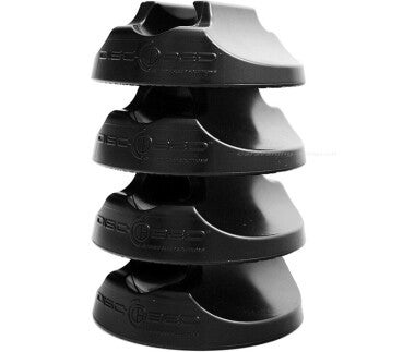 Die Foot Pads können einfach am runden oder geraden Rahmen des Disc-O-Beds oder der Kid-O-Bunk angebracht werden. Dazu beim geraden Rahmen einfach die rechteckigen Gummipfropfen entfernen und die Foot Pads darauf schieben (dabei die Foot Pads leicht auseinanderdrücken). Die gerippte Unterfläche der Foot Pads soll ein Rutschen auf glattem Boden verhindern sowie den Zeltboden schonen.