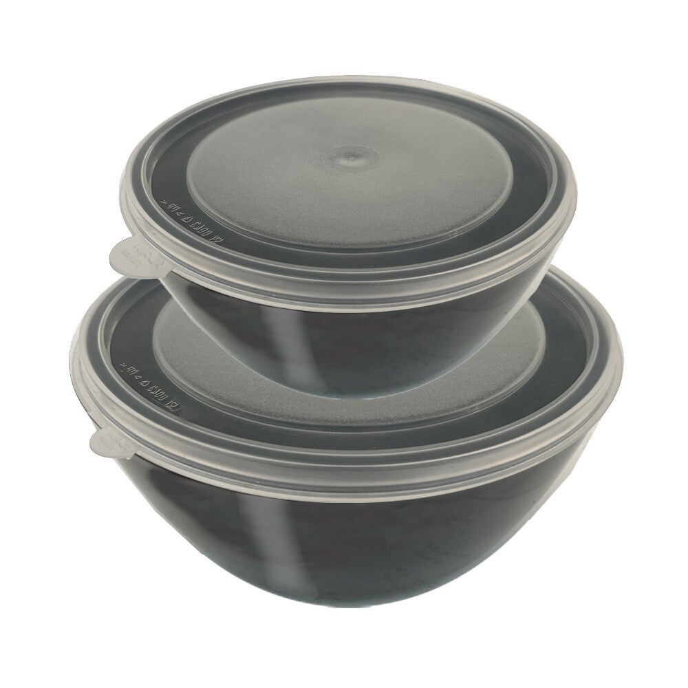 Die Schüsseln aus PBT und die Deckel aus PP sind spülmaschinen- und mikrowellengeeignet, geschmacks- und geruchsneutral. Zudem sind sie beständig gegen Fette und Öle. Direkten Kontakt mit Hitzequellen wie Heizplatten oder Backöfen bitte vermeiden.